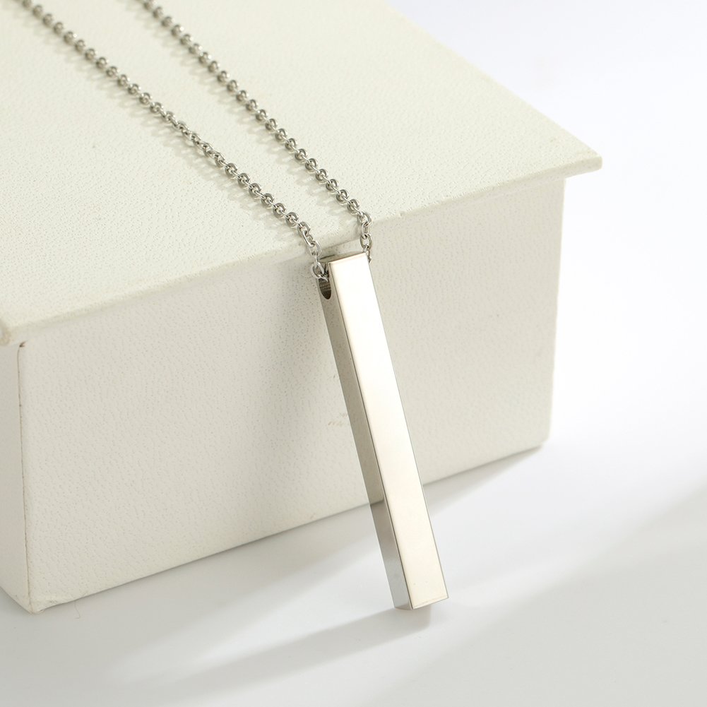 Collar minimalista de acero inoxidable con barra rectangular plateado