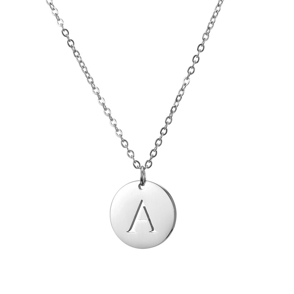 Lebelle Collar de acero inoxidable con dije “A” plateado