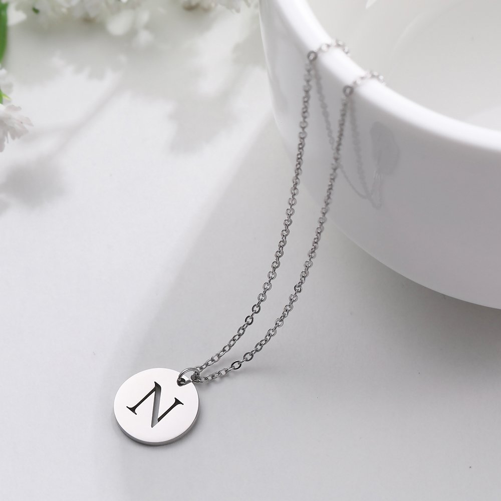 Collar de acero inoxidable con dije “N” plateado